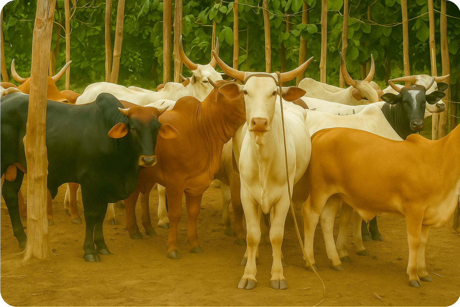 Cattle (pasture-fed, supplemented with crop residues & minerals)